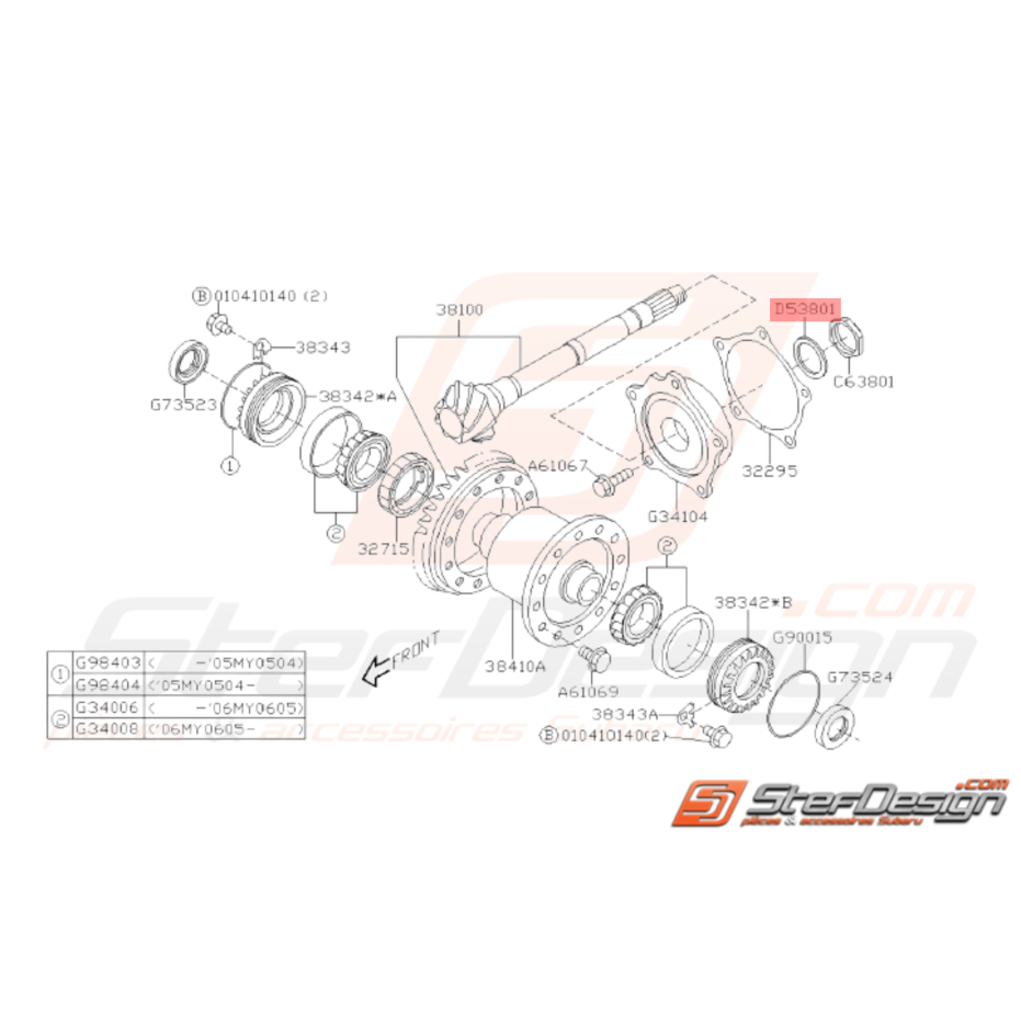 Rondelle blocage différentiel Subaru Impreza STI 2001 - 2014