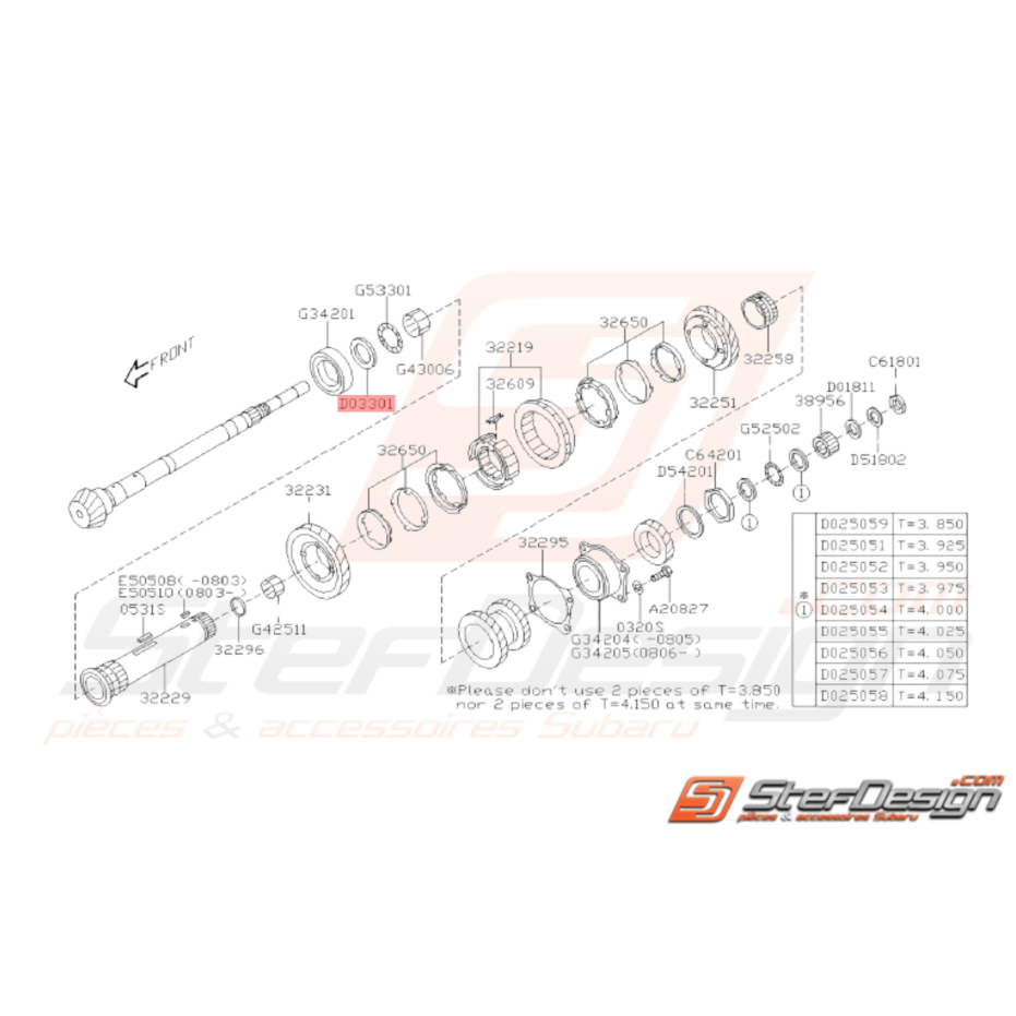 Rondelle de transmission Origine Subaru GT 93-00 WRX 01-10 FORESTER 05-07