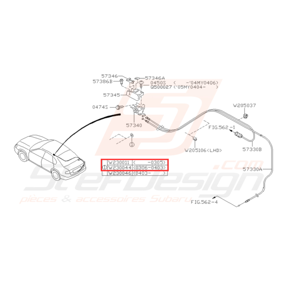- Poignée et câble d'ouverture de coffre WRX STI de 2001 à Mars 2004.