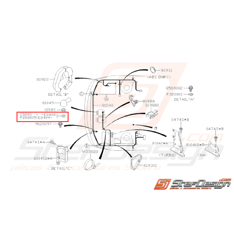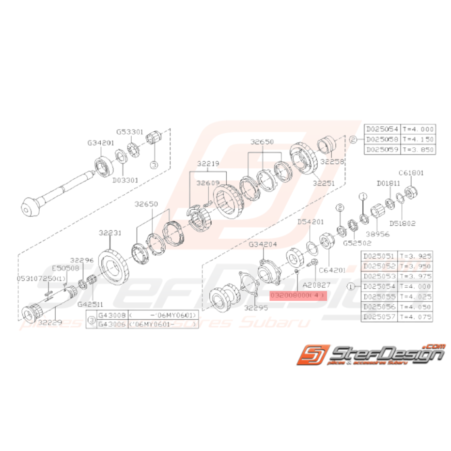 - fixation d'arbre de transmission pour GT de 1993 à 2000, WRX et STI de 2001 du 09 Avril 2005 à 2007.