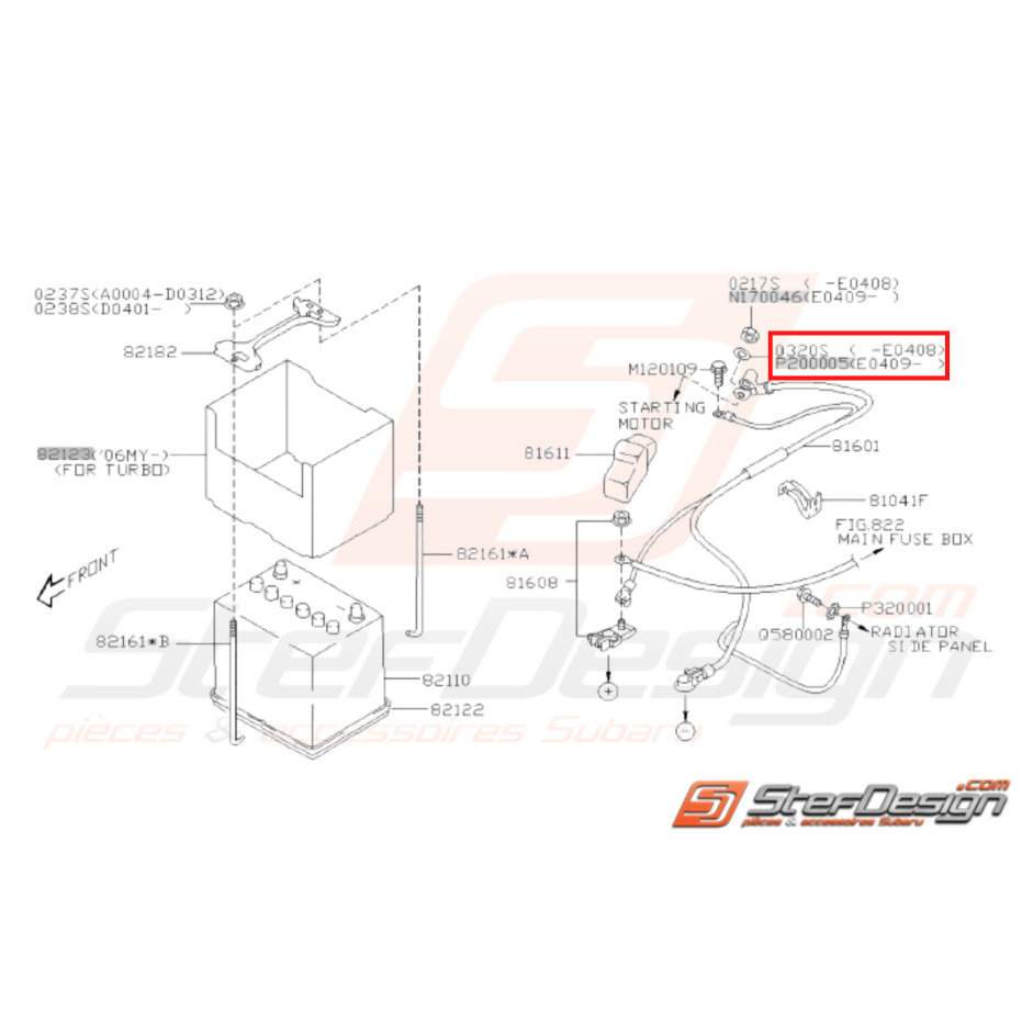 - Raccordement Batterie et Fixation pour Subaru WRX STI de 2001 à 2014 et BRZ de 2013 à 2019.