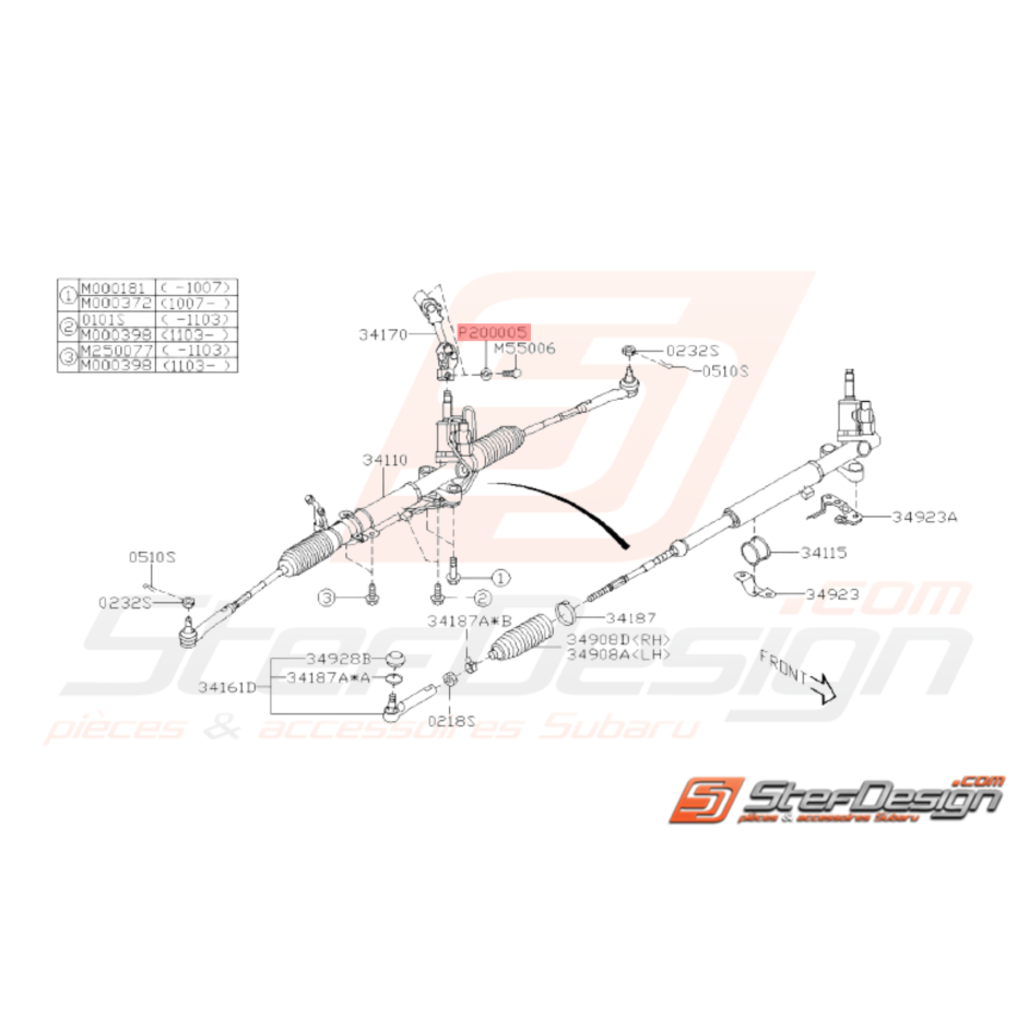 - Crémaillère de direction Assistée Raccord pour Subaru WRX STI de 2001 à 2014