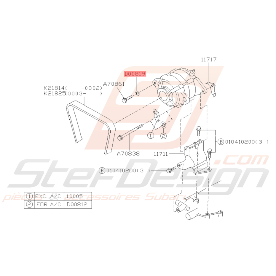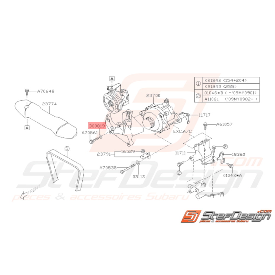 - Ensemble courroie d'alternateur Subaru WRX STI de 2001 à 2007