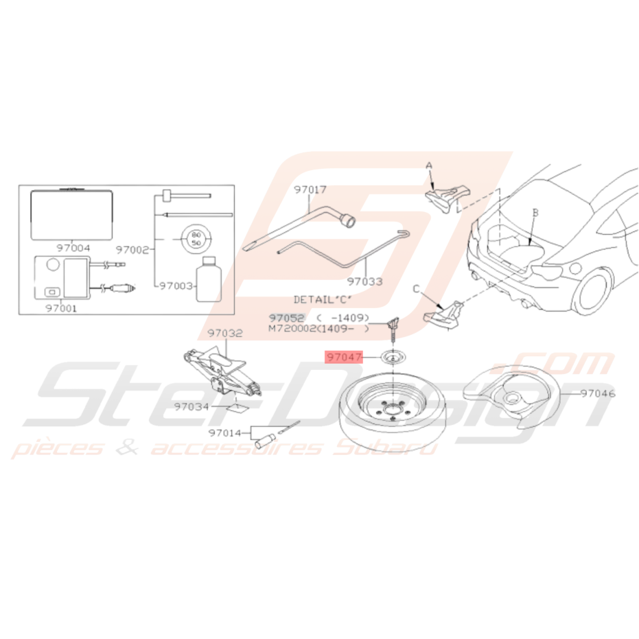 Rondelle Support Vis Roue De Secours pour Subaru BRZ de 2013 à 2019.