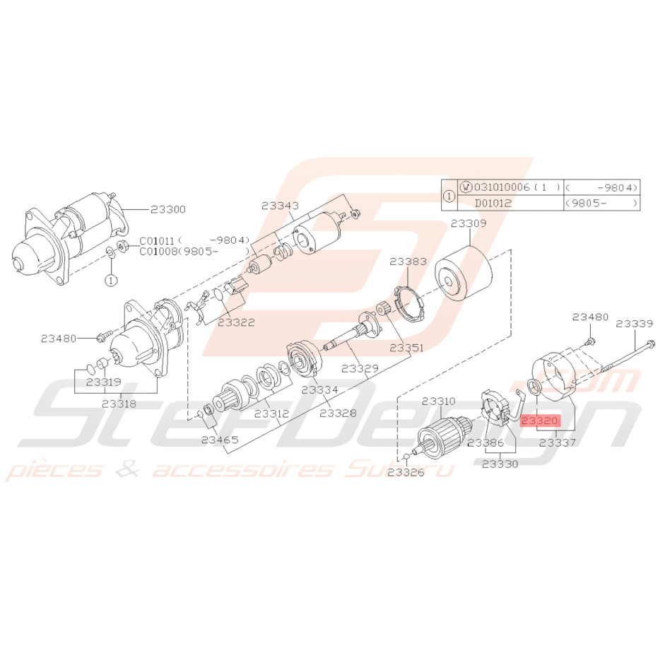 Roulement de Démarreur Origine Subaru GT 07/97-00 WRX 08-10 BRZ 13-19 FORESTER 97-02/05-07