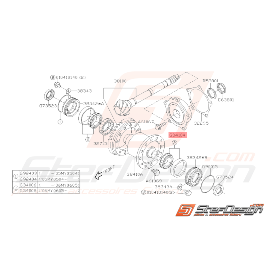 Roulement pour Subaru STI de 2001 à 2014.
