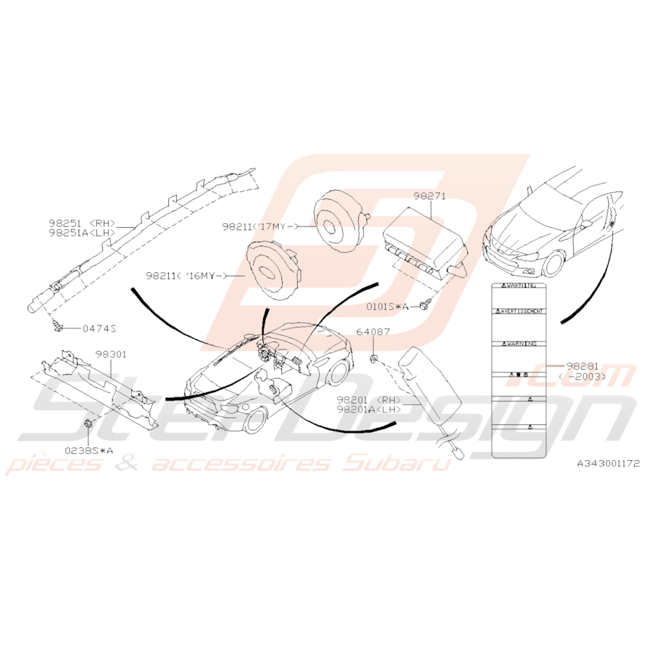 Schéma Airbag Habitacle Origine Subaru BRZ 2013-2019