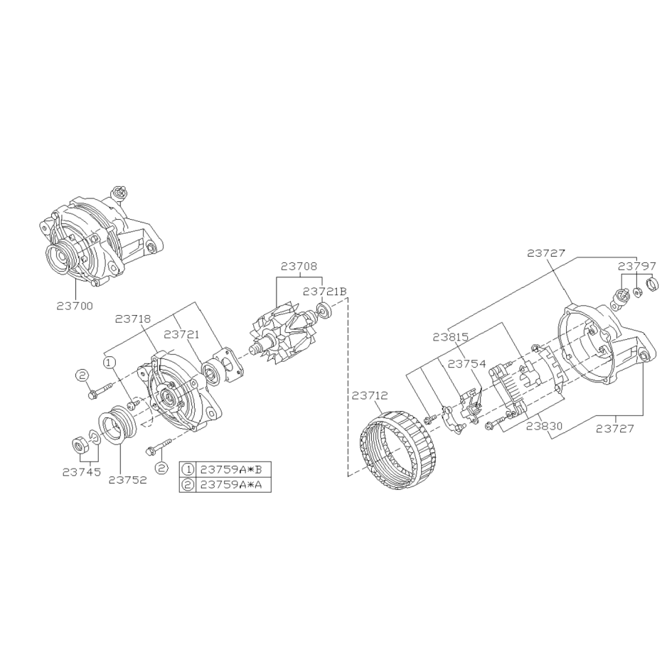 Schéma de l'ensemble des pièces d'Alternateur pour Subaru Forester Turbo de 1997 à 2002