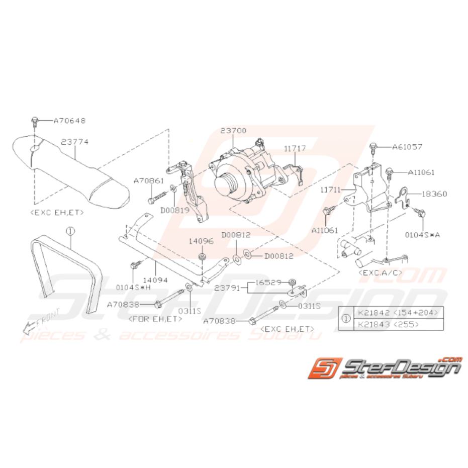 Les pièces 14094, 14096, D00812, A11061, 11711, A61057, 18630 et K21842 ne sont pas disponibles pour ces véhicules.