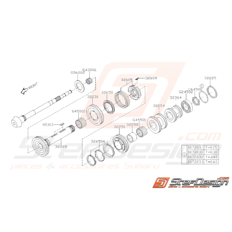 Schéma de l'ensemble des pièces d'Arbre Secondaire pour Subaru STI de 2008 à 2014.