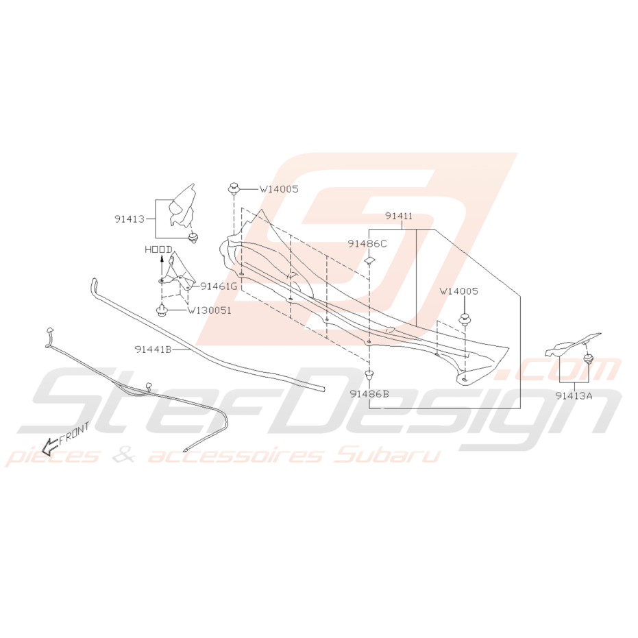 Schéma de l'ensemble des pièces d'Auvent pour Subaru BRZ de 2013 à 2019.