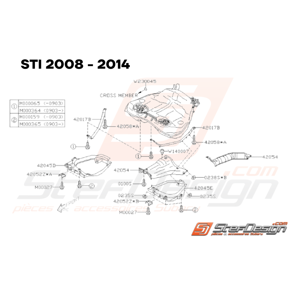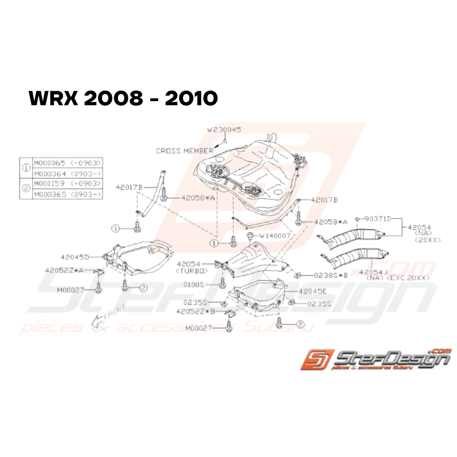Cette fiche produit possède DEUX schémas. L'un pour WRX de 2008 à 2010 et l'autre pour STI de 2008 à 2014.