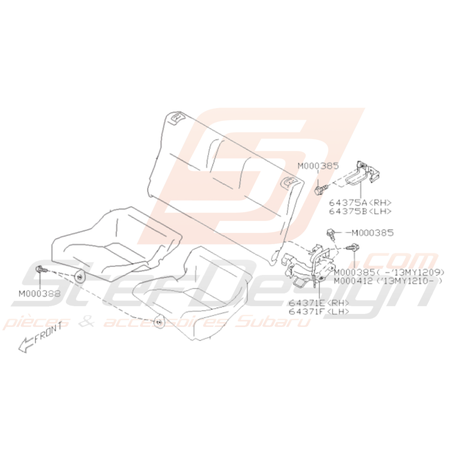 Schéma de l'ensemble des pièces de Banquette Arrière pour Subaru BRZ de 2013 à 2019.