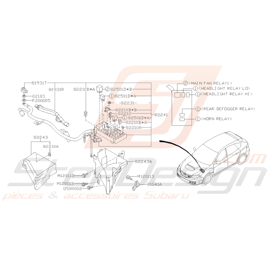 Schéma de l'ensemble des pièces de Boite à Fusibles pour Subaru WRX STI de 2008 à 2014.