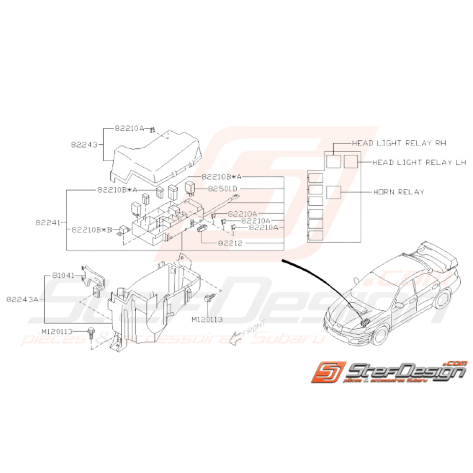 Schéma de l'ensemble des pièces de Boîte à Fusibles Principale pour Subaru WRX STI de 2006 à 2007.