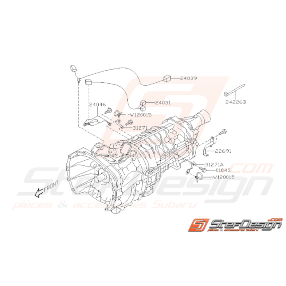 Schéma de l'ensemble des pièces de câblage électrique de Boite pour Subaru STI de 2008 à 2014.