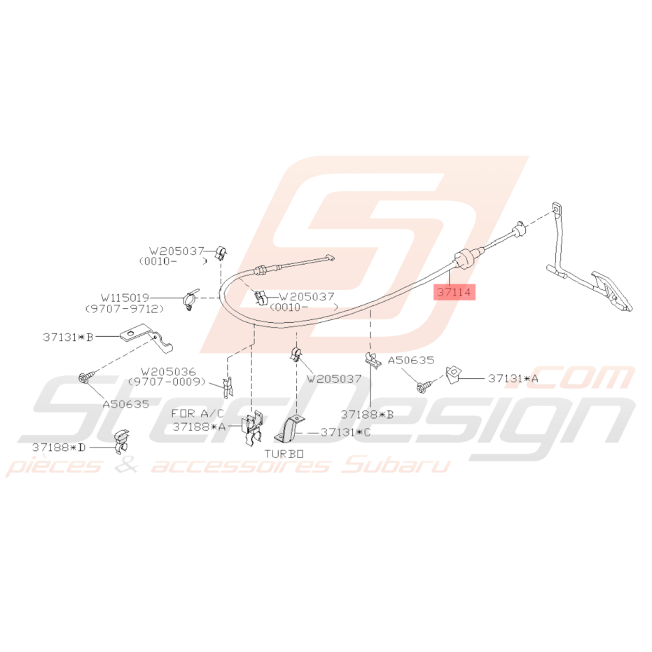 Schéma Câble d'accélerateur Origine Subaru FORESTER 1997-2002