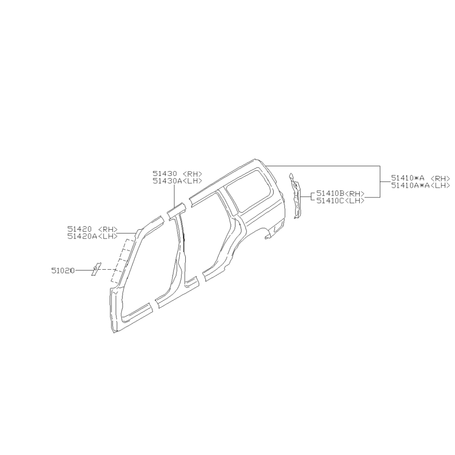 Schéma Carrosserie Extérieure Latérale Origine Subaru Forester Turbo 97-07/98