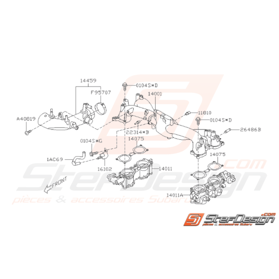 Schéma de l'ensemble des pièces de Collecteur d'Admission pour Subaru STI de 2008 à 2014.