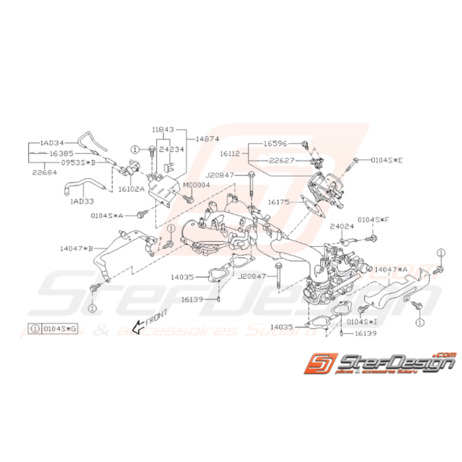 Schéma de l'ensemble des pièces de Collecteur d'Admission pour Subaru STI de 2015 à 2019.