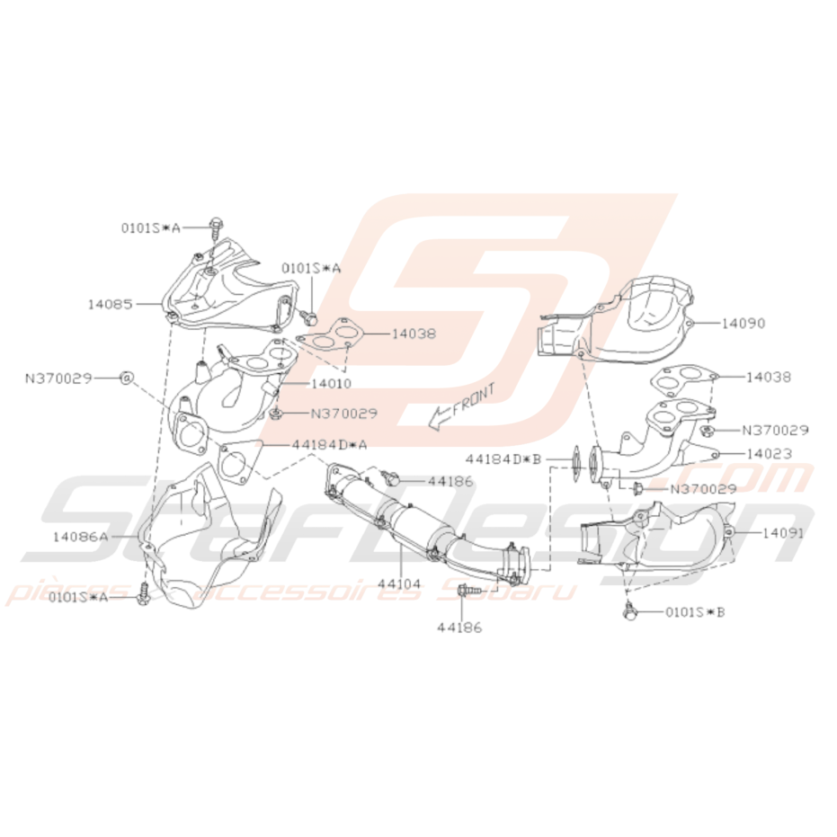 Schéma de l'ensemble des pièces de Collecteur d'Échappement pour Subaru STI de 2015 à 2019.