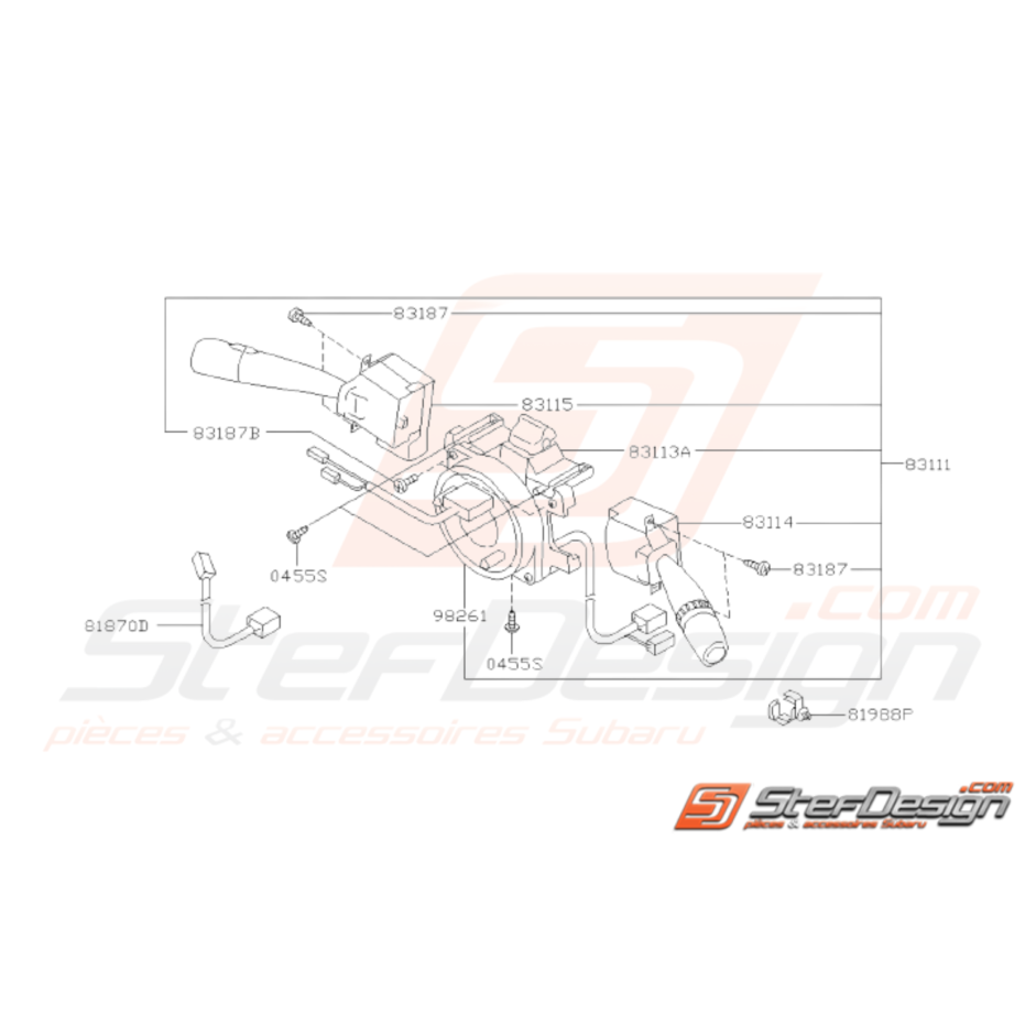 Schéma de l'ensemble des pièces de Commodo pour Subaru WRX de 2001 à 2007 et STI de 2001 à 2005.