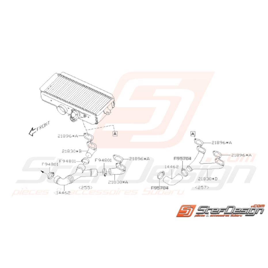 Schéma de l'ensemble des pièces des conduits d'air de l'échangeur pour WRX STI de 2006 à 2007.