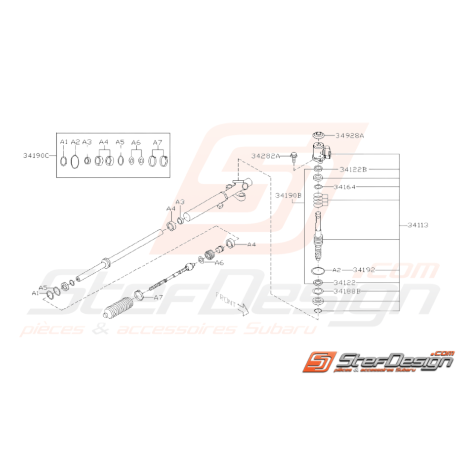 Schéma de l'ensemble des pièces de Crémaillère de Direction Assistée Valve pour Subaru WRX STI de 2008 à 2014.