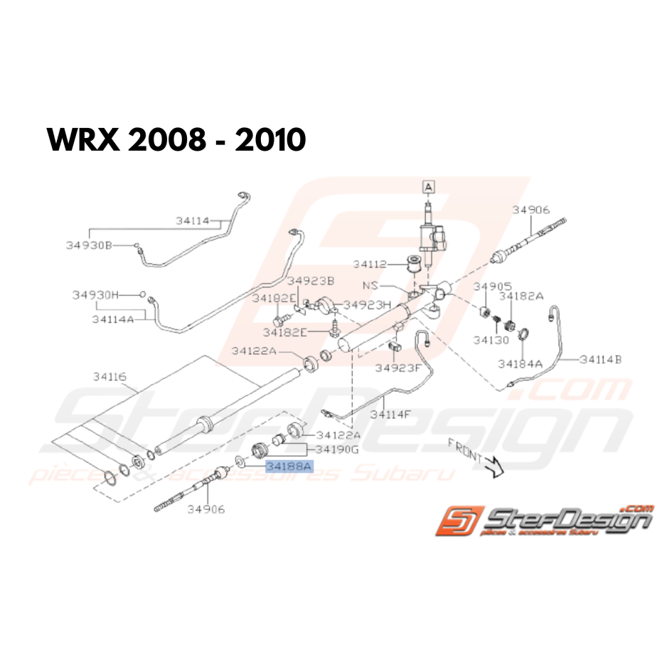 Schéma de l'ensemble des pièces de Crémaillère Direction Assisté Boîte de Vitesse pour Subaru WRX STI de 2008 à 2014.