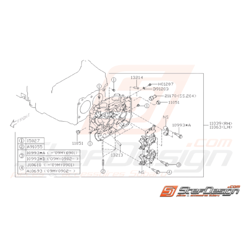 Schéma de l'ensemble des pièces de Culasse Corps pour Subaru WRX STI de 2008 à 2014.