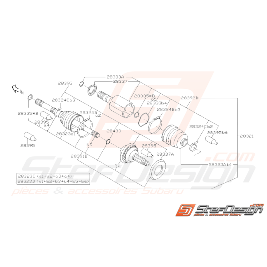 Schéma de l'ensemble des pièces de Cardan Avant pour Subaru WRX de 2004 à 2007.