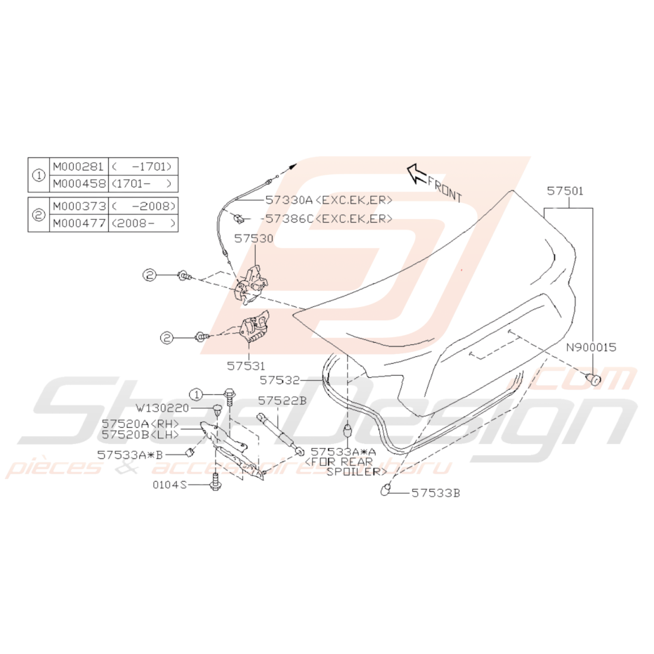 Schéma de l'ensemble des pièces de Coffre pour Subaru BRZ de 2013 à 2019.
