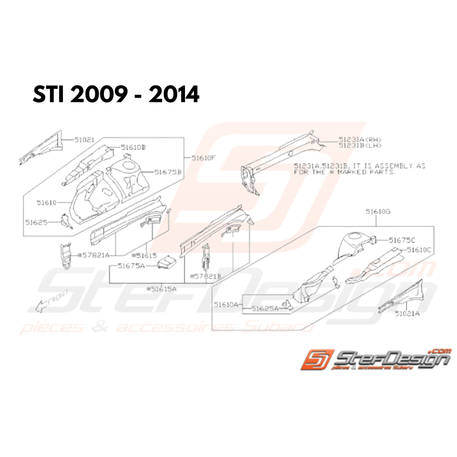 Cette fiche produit possède DEUX schémas. L'un pour WRX STI de 2008 et l'autre pour STI de 2009 à 2014.