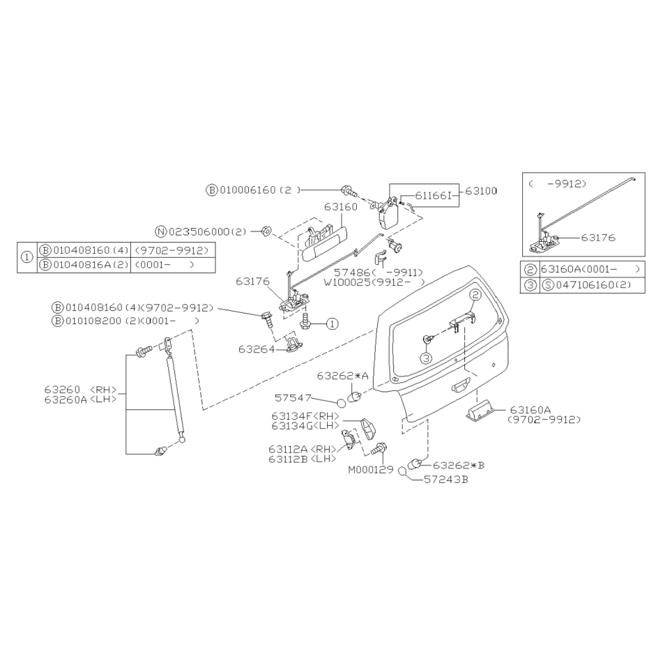 Schéma de l'ensemble des pièces de Fixation de Hayon Origine Subaru Forester Turbo 97-02