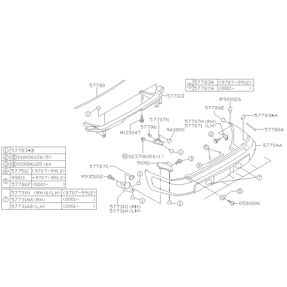 Schéma de Pare Choc Arrière Origine Subaru Forester Turbo 97-02