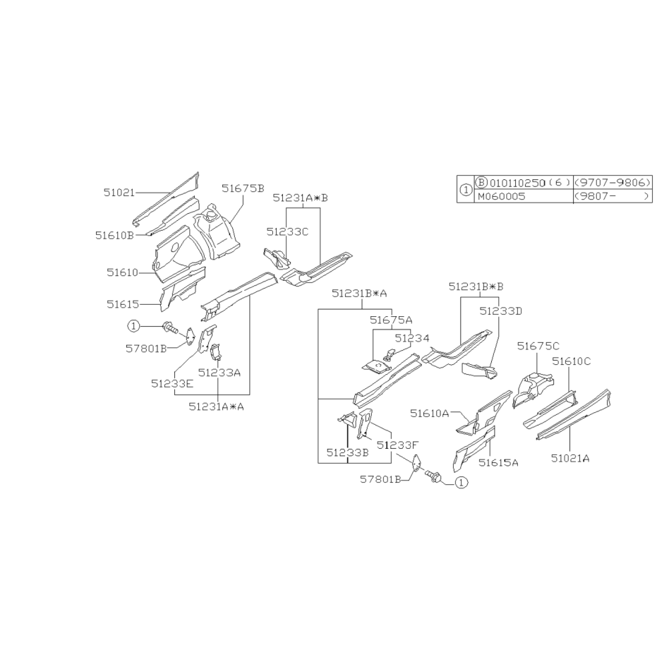 Schéma de l'ensemble des pièces de passage de roue pour Subaru Forester Turbo de 1997 à 2002