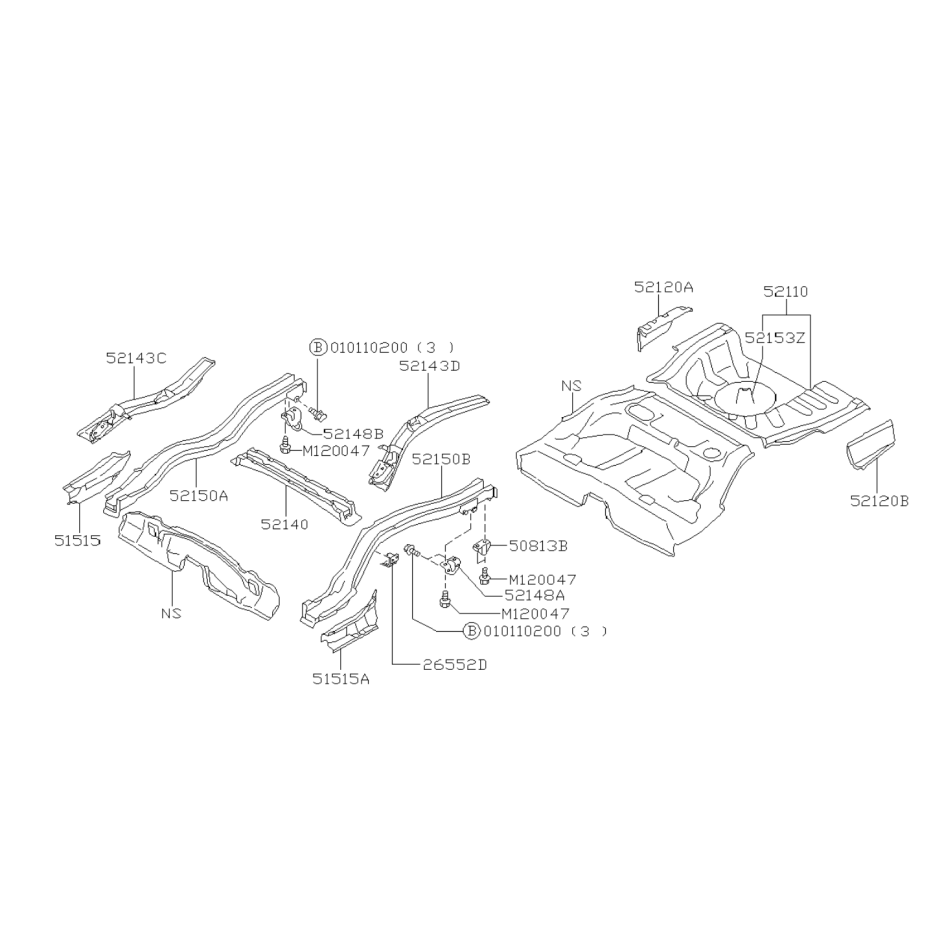 Schéma de l'ensemble des pièces de Plancher arrière pour Subaru Forester Turbo de 1997 à 2002