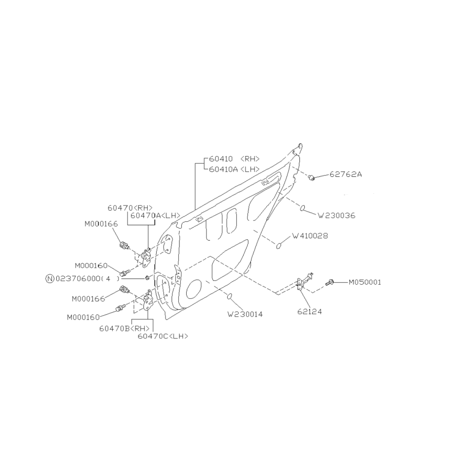 Schéma de l'ensemble des pièces de Portière Arrière pour Forester Turbo de 1997 à 2002