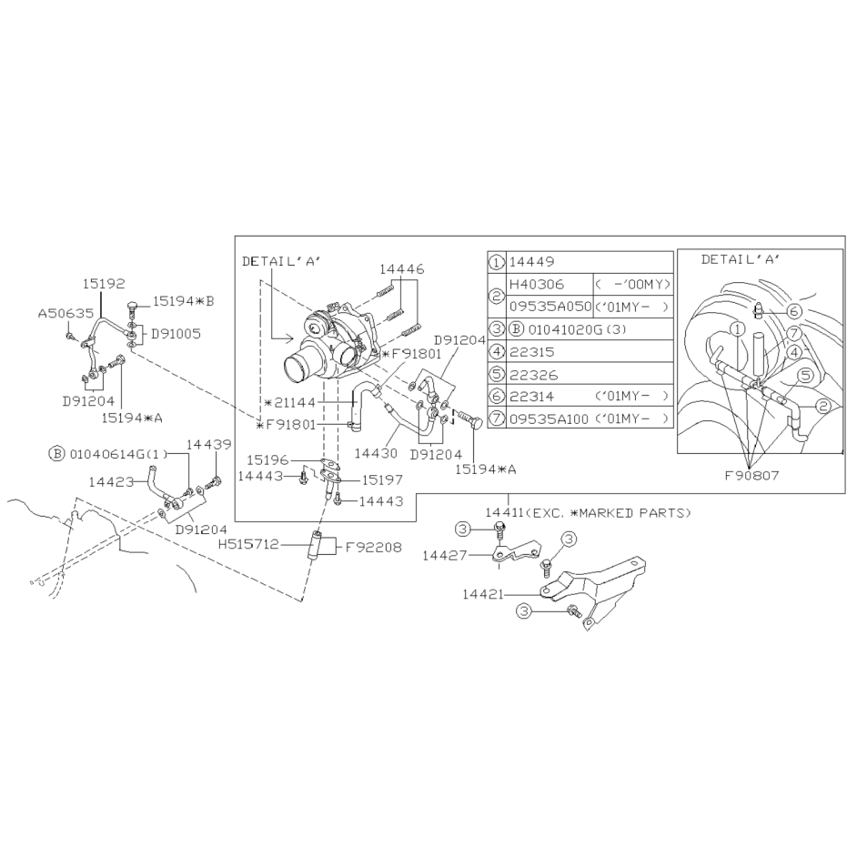 Schéma de l'ensemble des pièces de Turbo pour Forester Turbo de 1997 à 2002