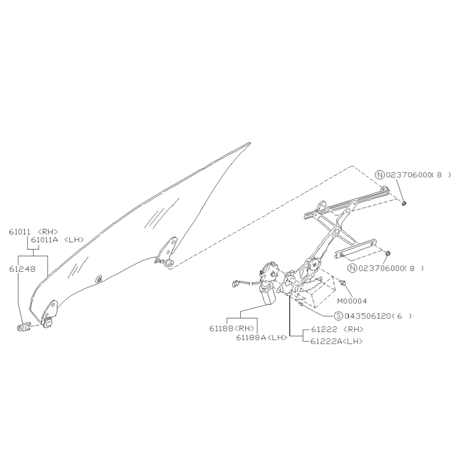 Schéma de Vitre et Lève Vitre Avant Origine Subaru Forester Turbo 97-02