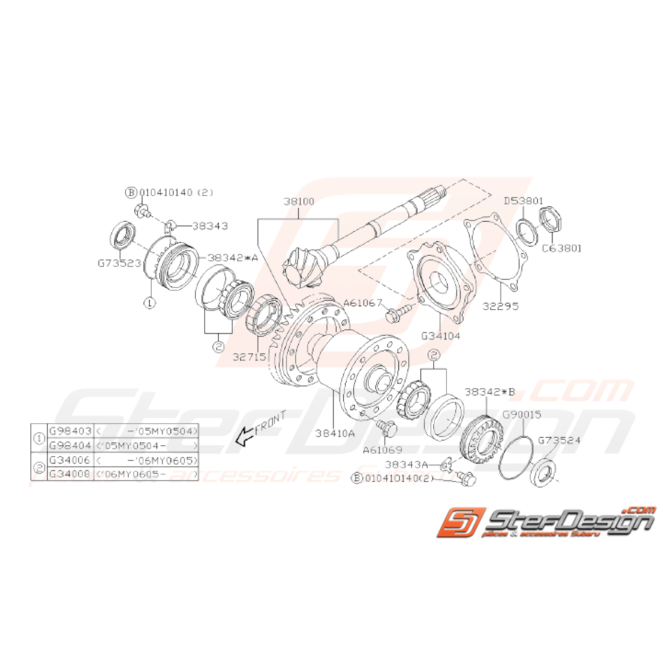Schéma de l'ensemble des pièces de Différentiel de Boite pour Subaru STI de 2004 à 2007.
