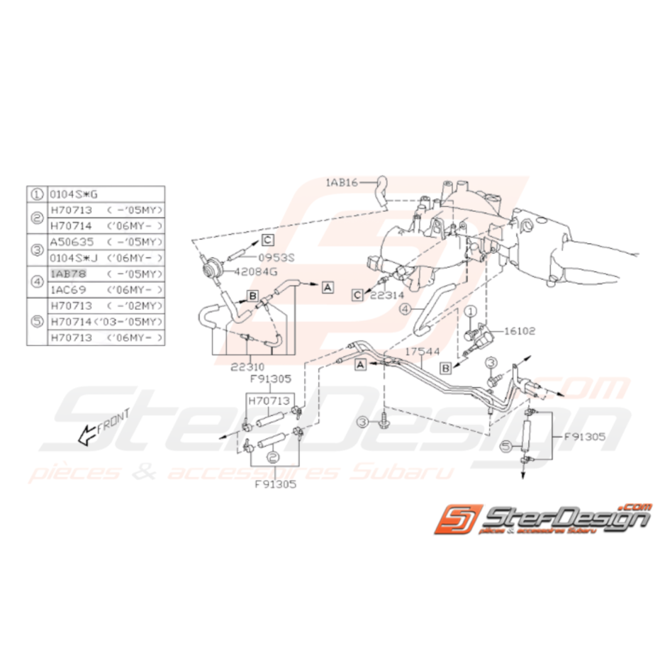 Schéma de l'ensemble des pièces de durites de carburant pour Subaru STI de 2001 à 2007
