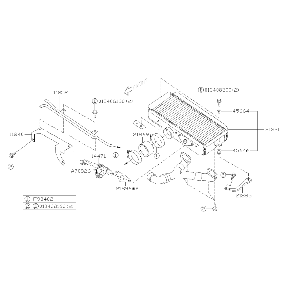 Schéma de l'ensemble des pièces d'échangeur pour Subaru Forester Turbo de 05/2000 à 2002