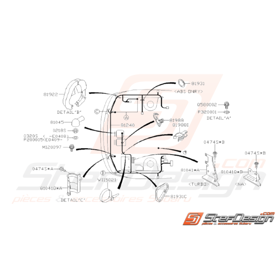 Schéma de l'ensemble des pièces de Faisceau Electrique Avant pour Subaru WRX STI de 2001 à 2005.