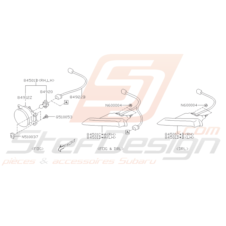 Les pièces 84922B, 84051C*B et 84501D*B (Feu de Jour sans Antibrouillard) ne sont pas disponibles pour ces véhicules.