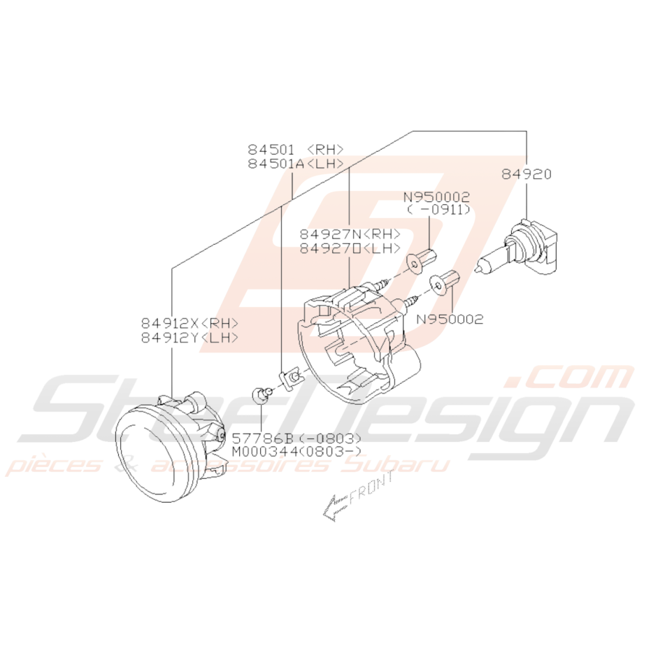 Schéma de l'ensemble des pièces de Feu Antibrouillard Avant pour Subaru STI de 2008 à 2010.