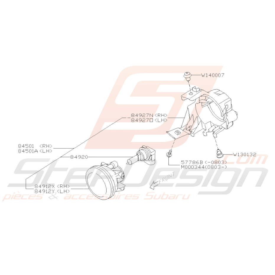 Schéma de l'ensemble des pièces de Feu Antibrouillard Avant pour Subaru WRX de 2008 à 2010.
