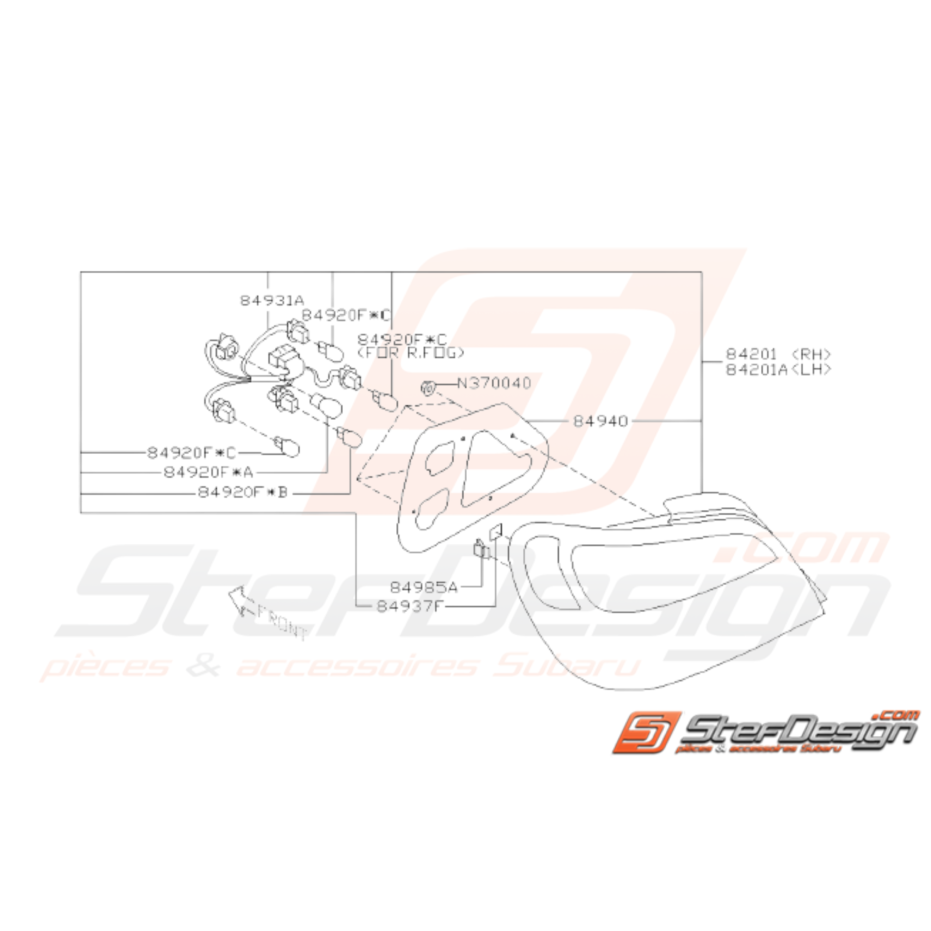 Schéma de l'ensemble des pièces de Feu Arrière Origine Subaru WRX STI de 2001 à 2002.
