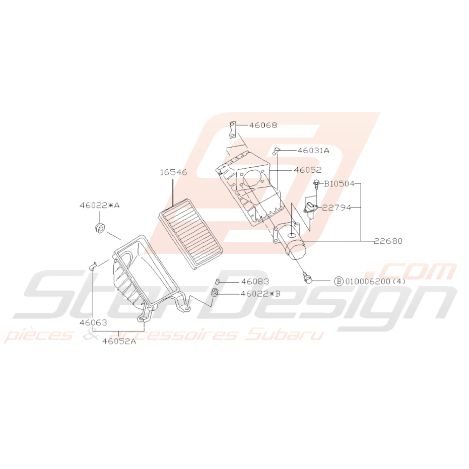 Schéma de l'ensemble des pièces de Filtre à Air et Cartouche filtrante pour Subaru FORESTER Turbo de 1997 à 2002