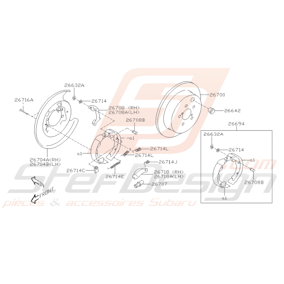 Schéma de l'ensemble des pièces de Frein de Stationnement pour Subaru BRZ de 2013 à 2019.